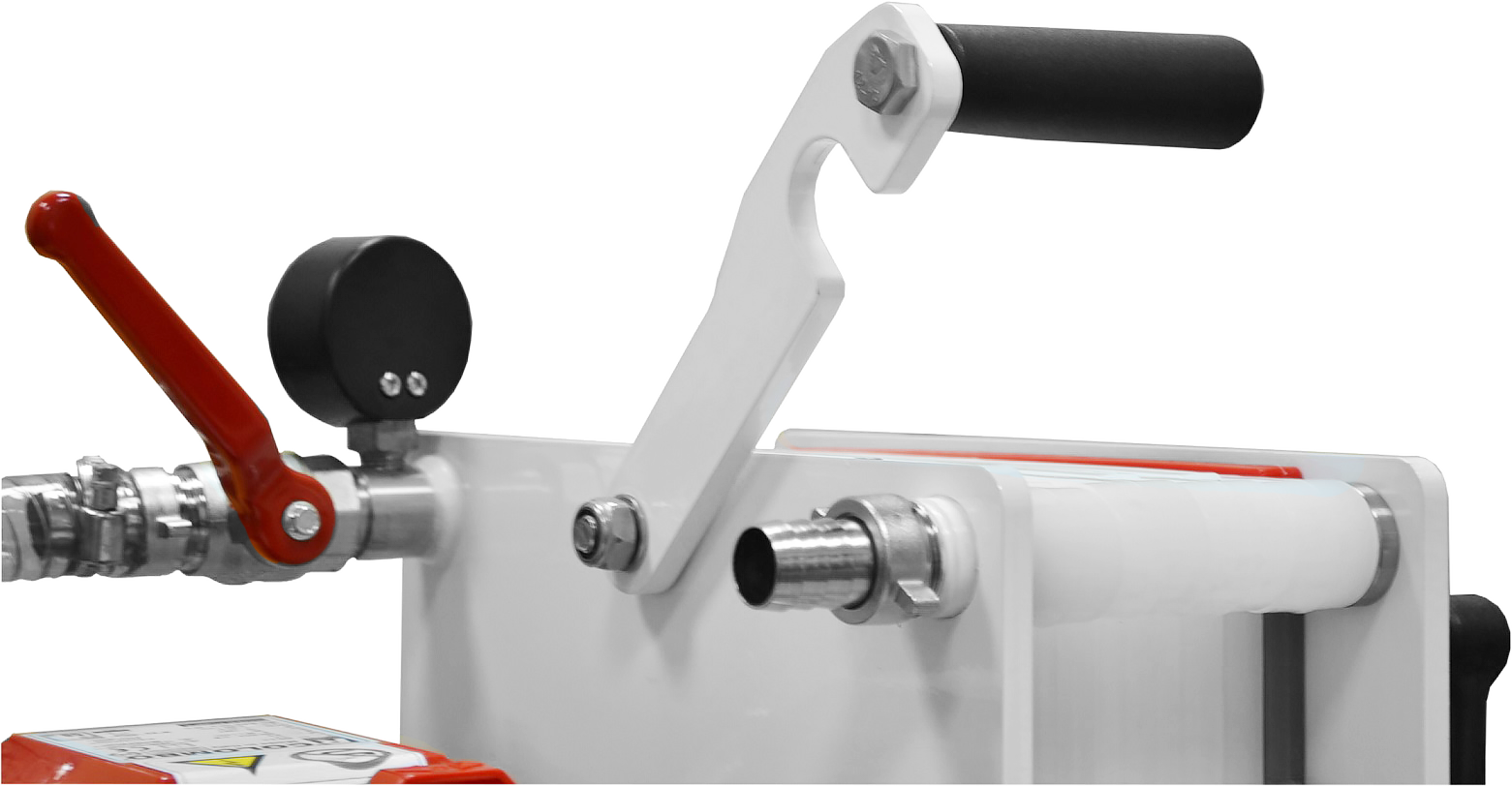 • Имеет манометр для контроля давления и отслеживания степени загрязнения картона. При высоком давлении следует сменить фильтровальный картон.